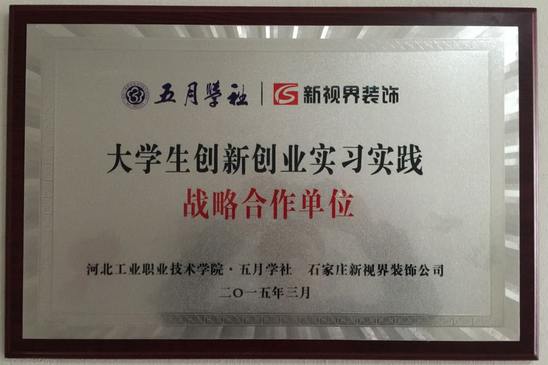 为适应高职教育多元化的办学要求,不断创新学生社团发展体制机制,本着“融入行业,根植企业,搭建平台,促进就业”的社团发展定位,近日,五月学社与石家庄新视界装饰工程有限公司建立“大学生创新创业实习实践”战略合作单位,学院首家学生社团校外创新创业实践基地揭牌落户。