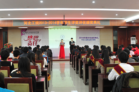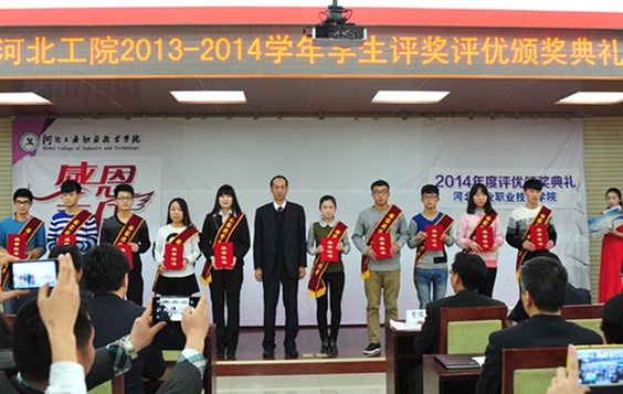 郭社军副书记首先宣读了《2013-2014学年学生评优表彰决定》和《2014年辅导员“大家访”先进个人、社会实践优秀指导教师表彰决定》。王振杰书记等院领导分别为荣获2013-2014学年国家奖学金、国家励志奖学金、校内奖学金、省级三好学生、省级优秀学生干部、院级三好学生、十佳大学生、十优大学生、省级先进班集体、院级先进班集体、2014年辅导员“大家访”先进个人、社会实践优秀指导教师等获奖学生和教师代表颁奖。颁奖过程中,还通过《工院学习分析报告》、《向上吧,少年》、《带着爱出发》等一部部视频短片,讲述了工院学子在青春中绽放理想,在学习中享受成功,在集体中展现自我的心路历程,向学院、老师们表达了谢意,体现了我院大学生昂扬向上的精神风貌以及发自内心的感恩之情。