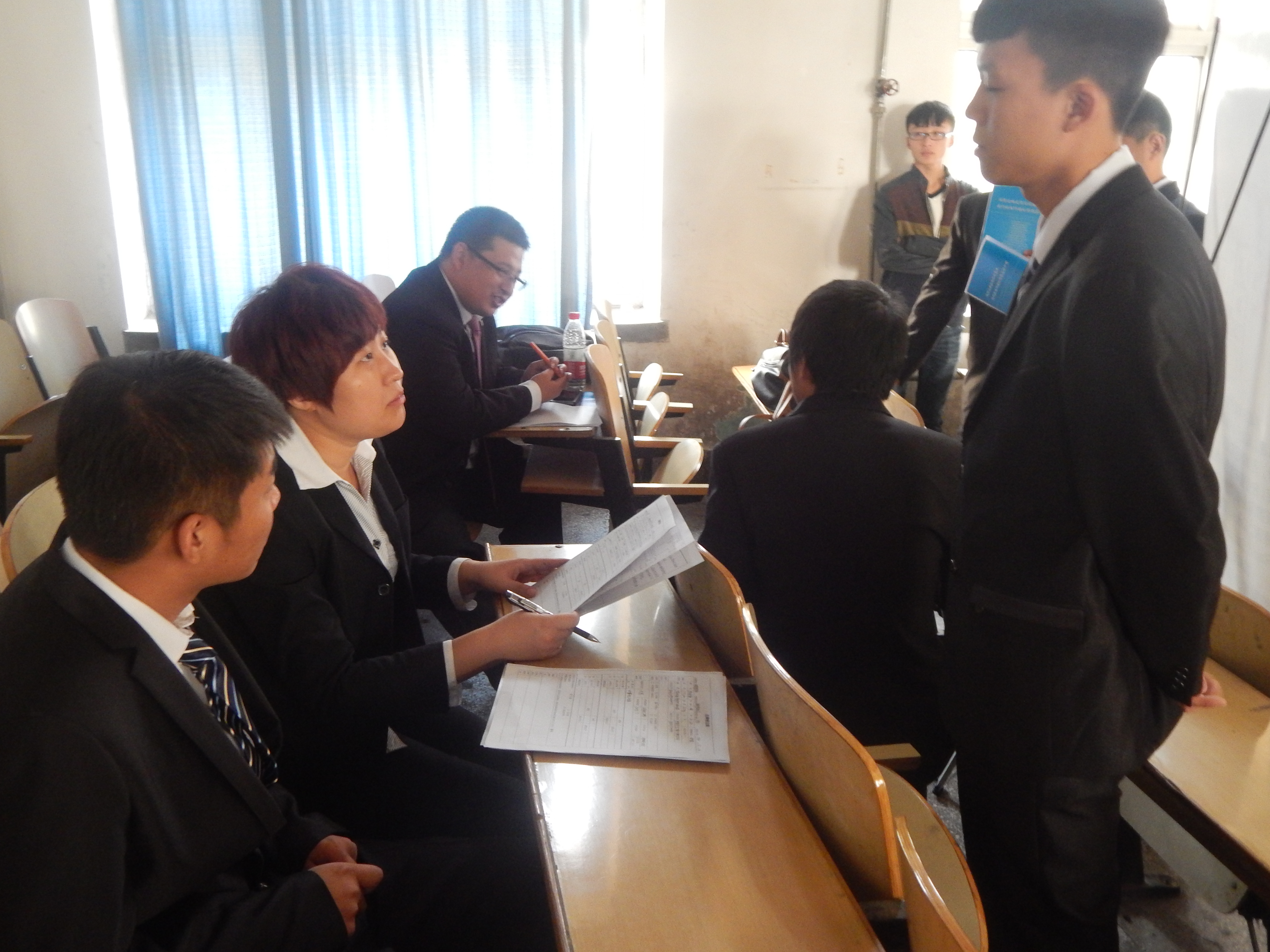 10月14日,小伙伴管理公司董事长耿总一行16人来我院招聘2015届毕业生。此次招聘是为小伙伴管理公司旗下雪佛莱、斯柯达、福特、别克以及汽车维修和汽车租赁等八家公司招聘销售及售后人员。招聘会上,八家公司经理分别就企业经营情况、项目建设情况以及毕业生福利待遇等方面进行了详细讲解,共有80多名2015届毕业生参加了面试。