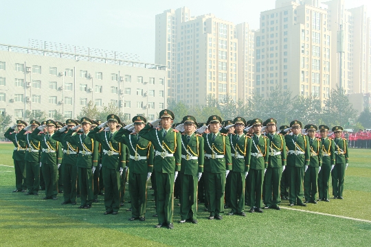 在雄壮的解放军进行曲中阅兵式开始。党委书记王振杰在驻石某部领导的陪同下逐一检阅了整齐的受训方队,并向他们致以亲切的问候。同学们以饱满的热情、整齐的军姿迎接了学院领导的检阅。伴随雄壮的阅兵曲,分列式开始。各系方队军姿挺拔、士气高昂、意气风发,迈着矫健的步伐从主席台一一走过,嘹亮的口号响彻学院上空。随后的钢铁连会操表演、军体拳表演、擒敌拳表演、内务整理表演、军歌大合唱等环节充分展示了军训的成果,赢得了与会领导老师及其他受训新生的阵阵掌声和喝彩。汇报表演结束后,党委副书记、纪委书记郭社军宣读了军训先进集体、先进个人表彰名单,主席台领导向先进集体和个人代表颁发了奖牌和荣誉证书。