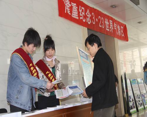 2010年3月23日是世界气象日60周年纪念日,今年世界气象日的主题为“世界气象组织——致力于人类安全和福祉的六十年”。结合该主题,河北省气象局于3月20-21日举办了为期两天的气象宣传活动,我院机电工程系青年志愿者积极参与其中。