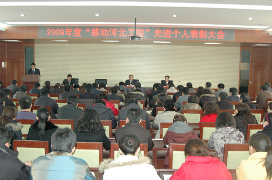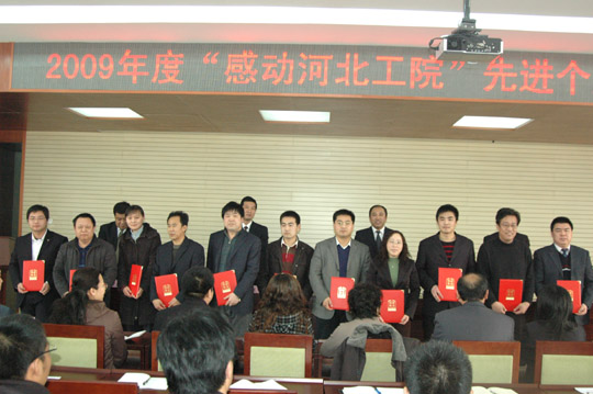 3月4日下午,在五楼报告厅隆重举行2009年度“感动河北工院”先进个人表彰大会,院长董兆伟、党委副书记王建刚、常务副院长贾俊礼出席大会,王世龙副院长主持大会,学院全体科级以上干部及辅导员参加了大会。